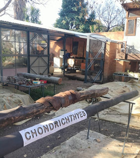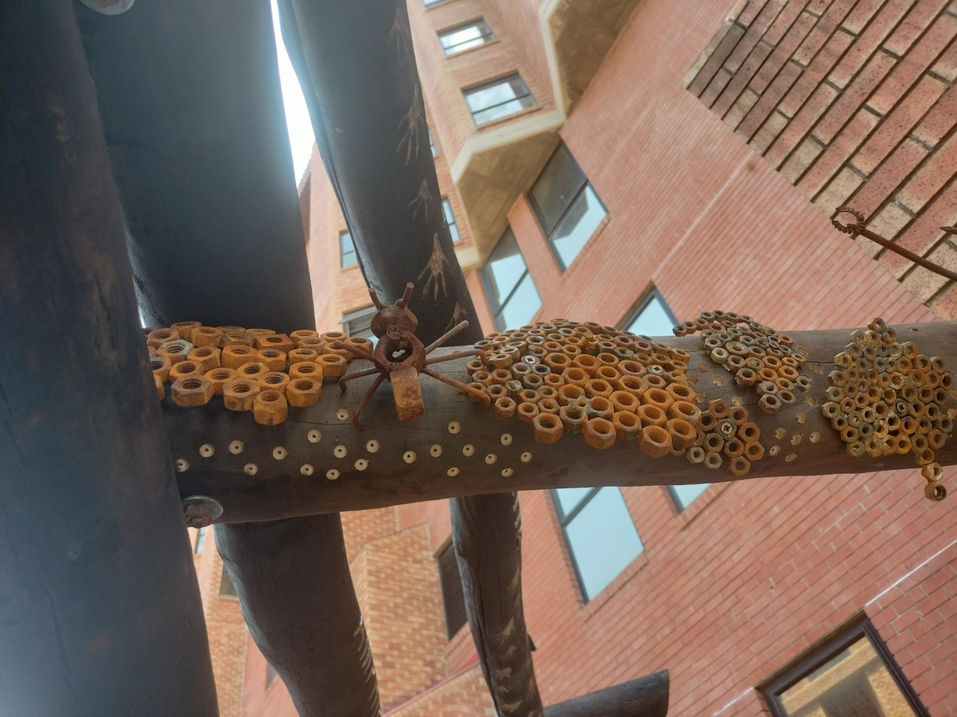Constructed from cleared exotic tree trunks and recycled steel elements, the cleared tree trunks, once invasive species, now take on a new life as they form the new structure. Recycled steel elements, fixed and embedded into the logs suggest the textures of various living organisms.